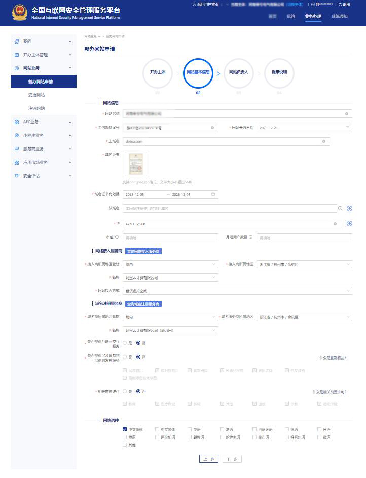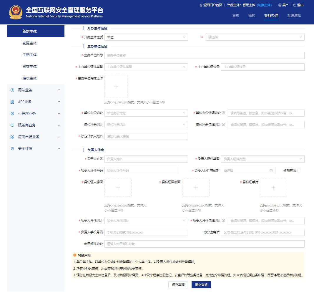 2、通過APP掃碼登錄備案側 業務辦理 ,初次備案,新增主體